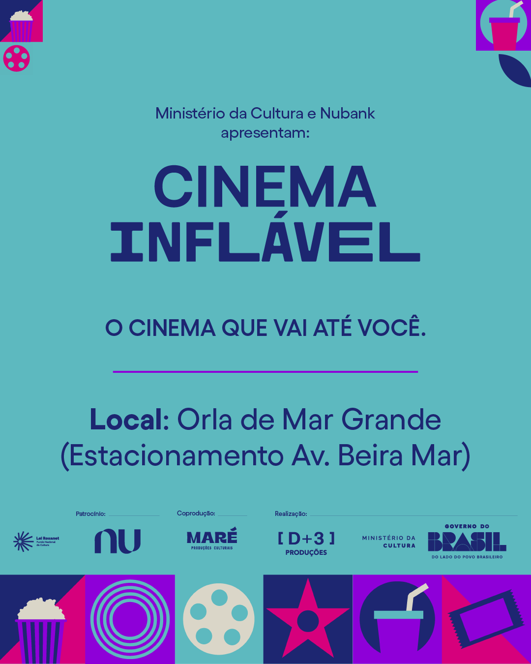 Cinema Inflável tem início às 18h, com atividades culturais, e o filme às 19h.